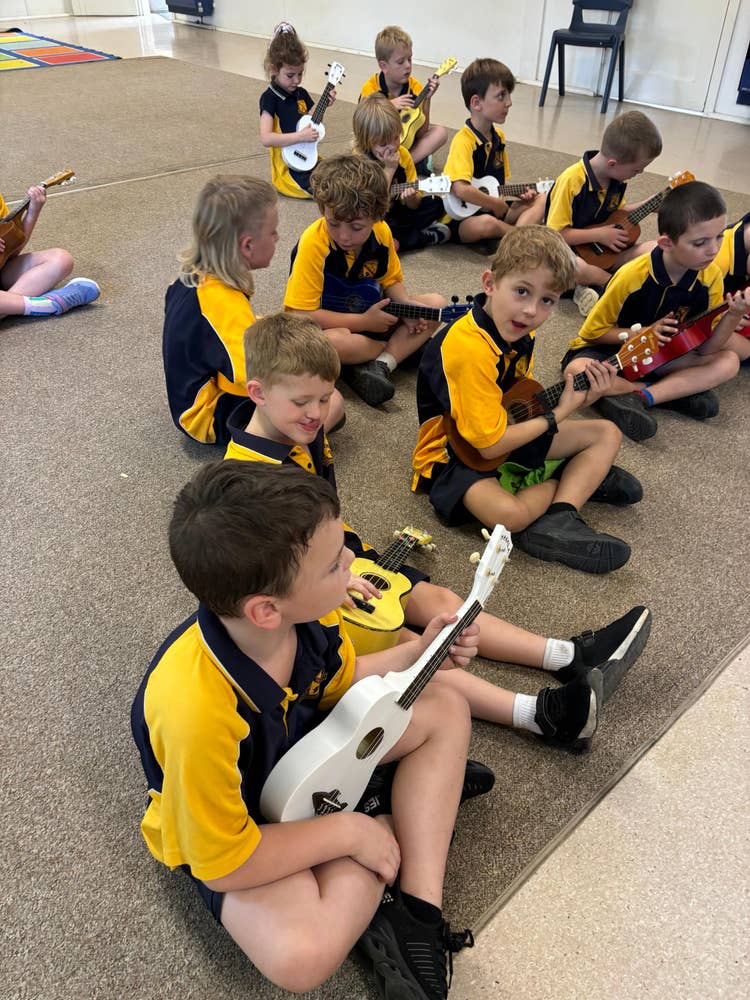 The Hume Conservatorium of Music provides whole class and individual music lessons for Gunning Public School students. They hone their skills with Lou, Wendy and Tony learning musical notation and concepts, vocal skill development, and skillfully playing the piano, guitar, boom whackers, ukuleles.